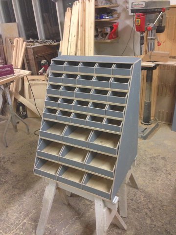 Itselle tehty lokerikko ruuveille, pulteille yms.
