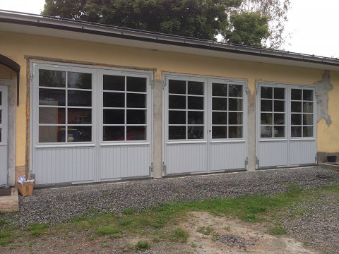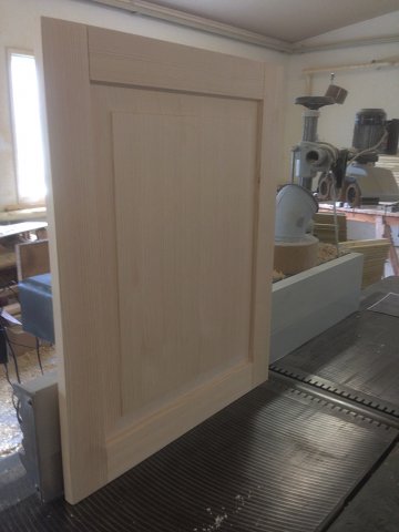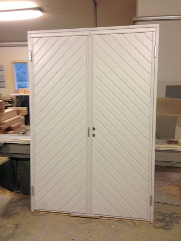 Asiakkaan mittojen mukaan tehty puuvalmis ulko-ovi avattavalla levikkeellä.