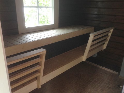 Pesuhuoneen ikkuna tuuletusluukulla, kuva sisäpuolelta.